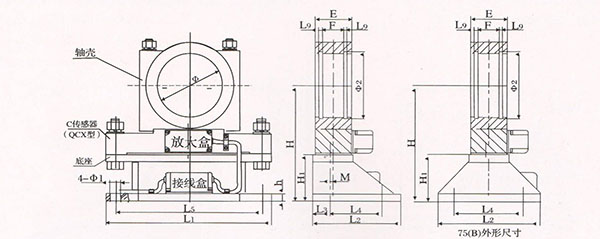 带轴壳和底座的传感器.结合QCX-II B型仪表.是起重量限制器的常用形式,是我厂主要产品之一。 订货号如"QCX-I旧-4-204/170-320"