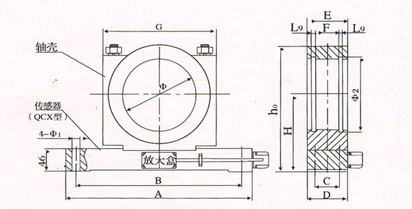 不带底座的传感器主要用于轴承座中心高不够的场合,或者是用户自行制作底座只需传需器和轴壳。下表是结合银川起重 机厂的标准设计的,也根据用户定制非标。